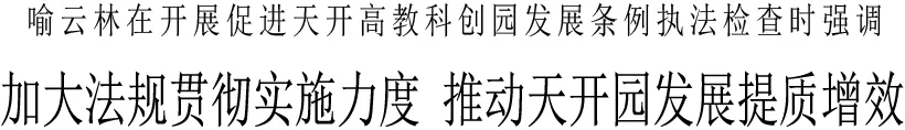 在天开园管理机构座谈会上,喻云林认真听取了市科技局、天开园“一核两翼多点”管理机构负责同志贯彻落实条例情况的汇报。他指出,一年多来,各有关方面把贯彻落实法规作为重要任务,行动迅速扎实、工作举措务实、服务保障严实,各项工作取得了可感可及的实际成效。要深刻把握天开园的功能定位,进一步加大条例实施力度,在法治轨道上推动天开园高质量发展,形成更多新质生产力。